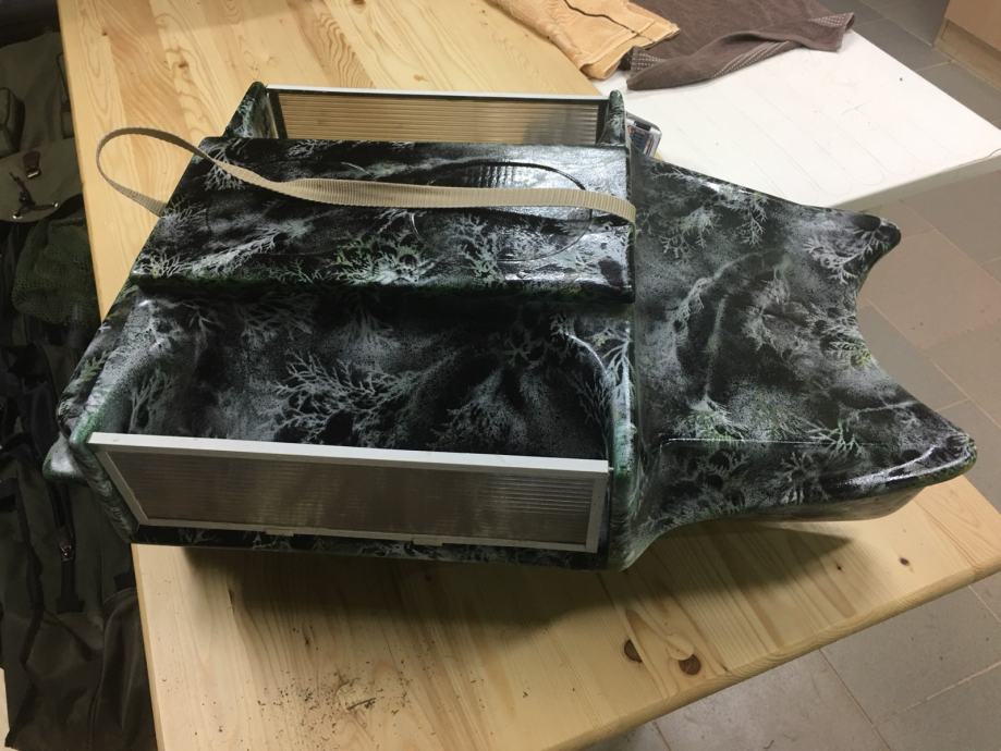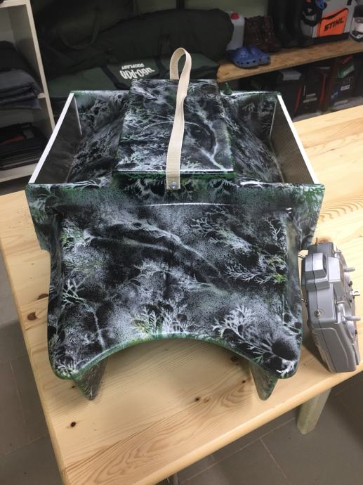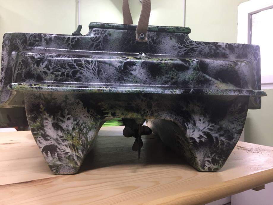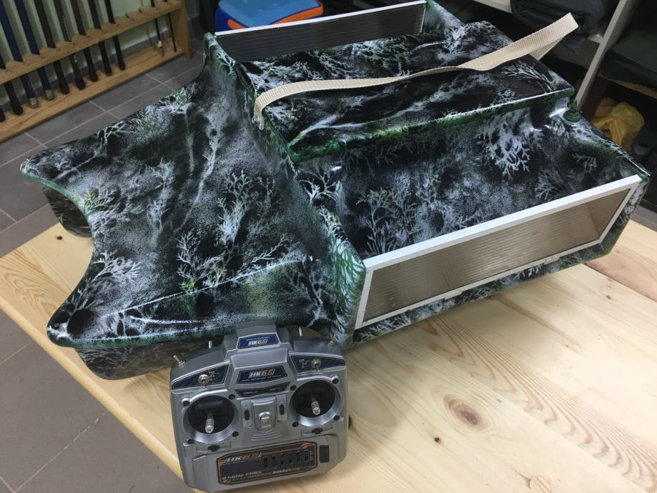Čamac star godinu dana.Koristen jako malo , Izuzetnih performansi . Koristena najnovija graupner elektronika. Radi na 6v . Dvije baterije svak po 12ah. sto mu omogucava puno koristenja. Nema antene na sebi. Kipe imaju odvojive motore sto je rijetkost. Led rasvijeta preko daljinskog. Domet 800m. Ukupno nosi 5kg hrane.