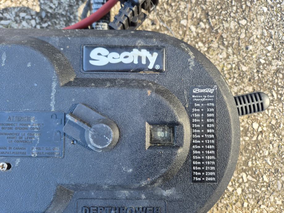 RONILICA (DOWNRIGGER) Scotty za Big Game za električno spuštanje mamca olovnom kuglom, sa napojnim kabelom 12V DC, sa namatajućom inox sajlom duljine 75met, sa pripadajućim kuglama 3 i 5 kg, malo korištena.