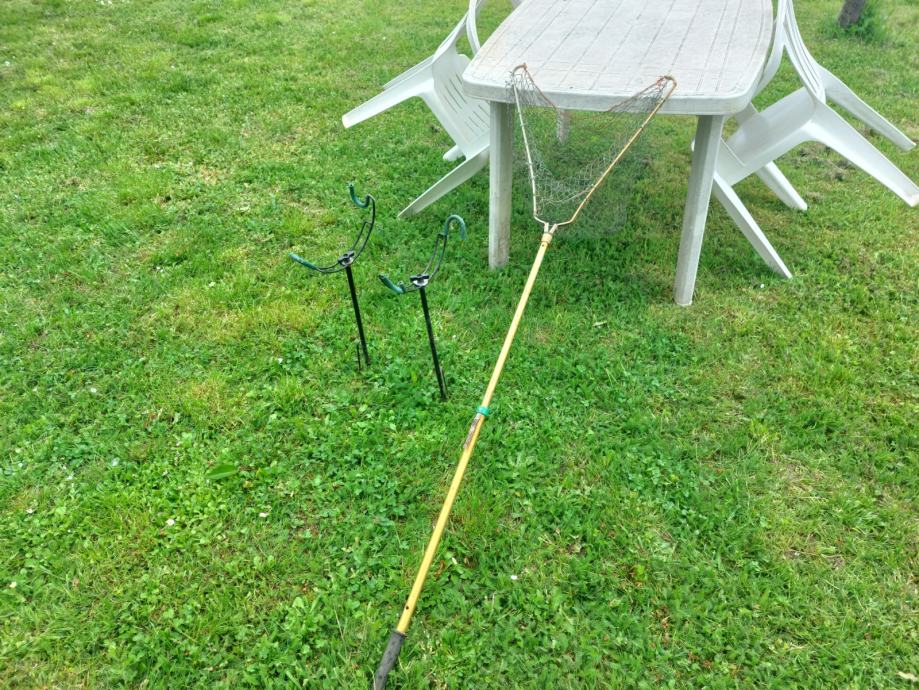 Prodajem metalne držaće za za dva štapa za postavu...i uz to dajem teleskopski podmetač i žičano pletenu čuvaricu za ulov...sve ispravno i očuvano.