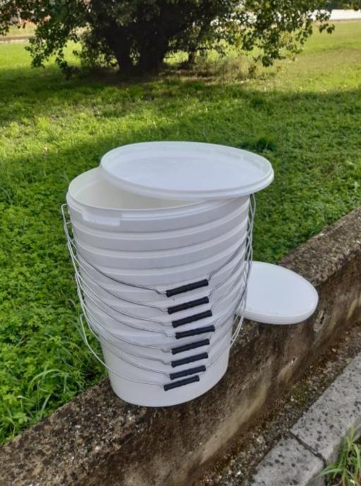 Kante od prehrambene plastike s originalnim poklopcima, 15 litara pogodne za med, mast, zimnicu, za kiseljenje kupusa i čuvanje prehrambenih namirnica.