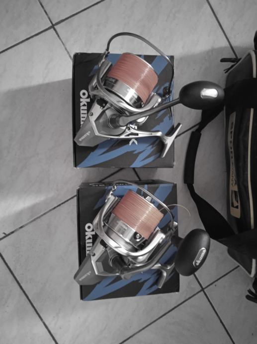 2 role okuma 8k surf na kojima je namotan najlon trabucco xps longcast fluo 0.40