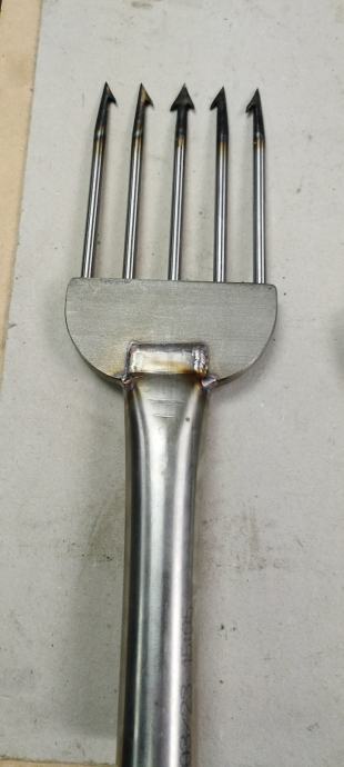 Kaljeni su samo vrhovi cca 50 mm od vrha da usljed udaraca u kamenito dno ne pukne već se eventualno savine i ispravi se..
