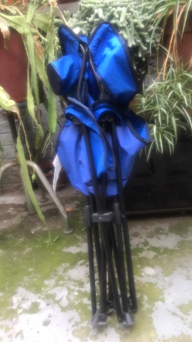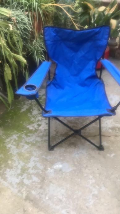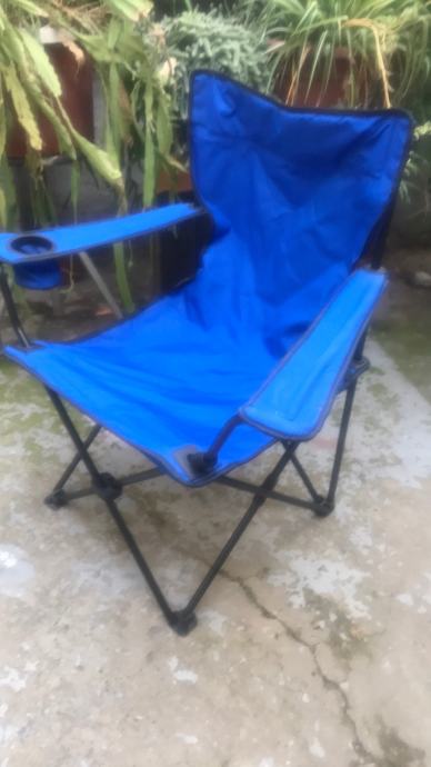 Prodajem novvu sklopivu stolicu kao na slici , jaki polister čvrste kontrukcije, lagana, velika može i za krupniju osobu. Prakticna za kampiranje i izlete lako složiva.