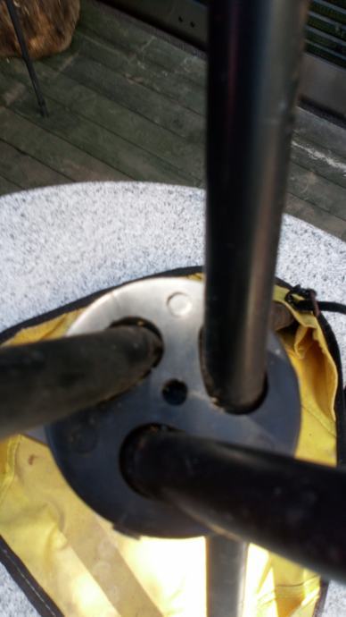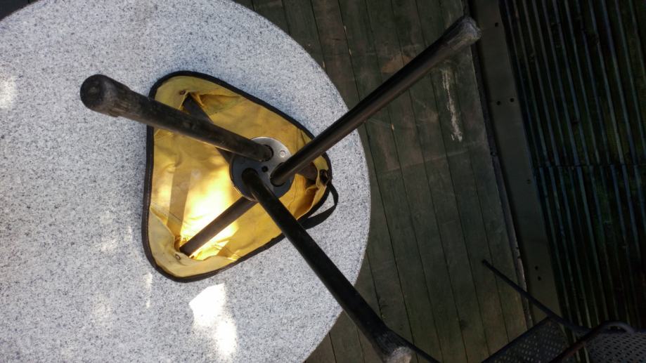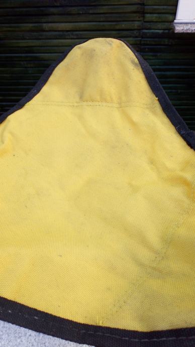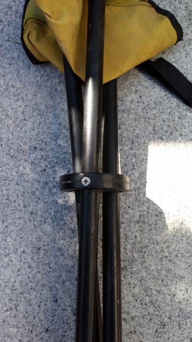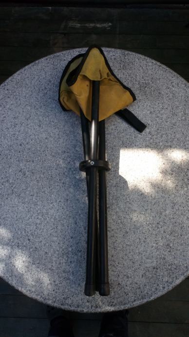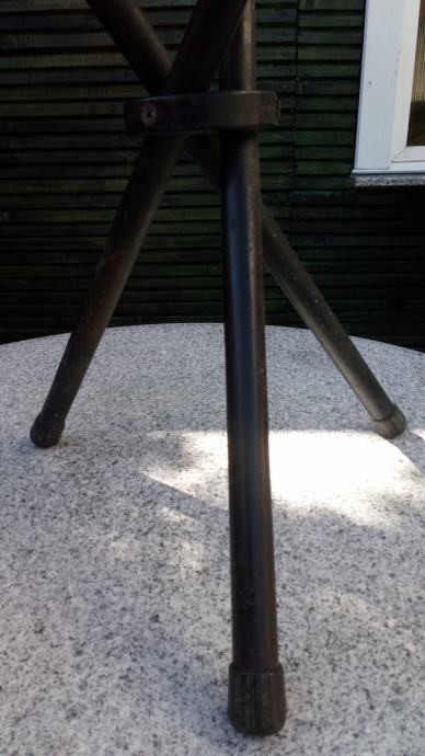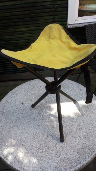 Stolica, sklopivi tronozac. Koristena, ali sluzi svrsi. U dobrom je stanju,nije izderana. Ne izvrce se iz nje osim ako dobra riba zagrize