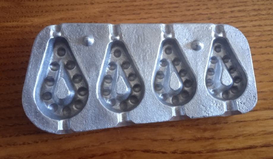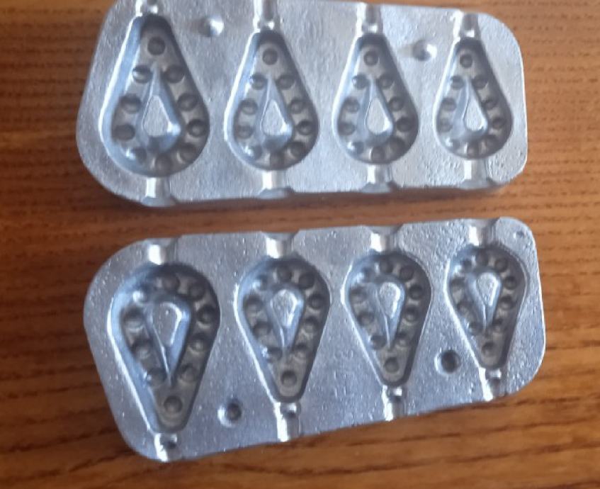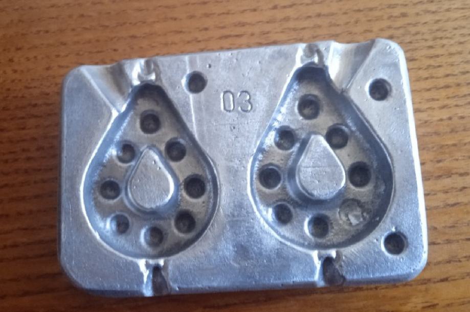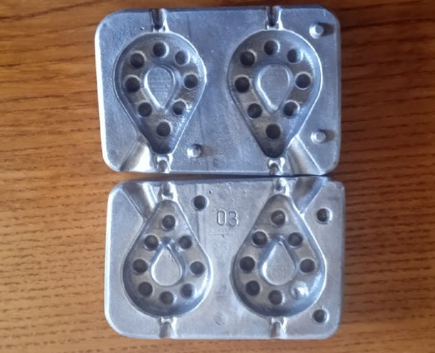 Odlično dizajniran kalup za lijevanje olova,dva modela jedan od 40,50,80 i 90grama a drugi 110 i 130grama. Cijena po komadu25e za dva kom.besplatna dostava.kao na slikama, zvati na broj0917985947oglas iz usluge