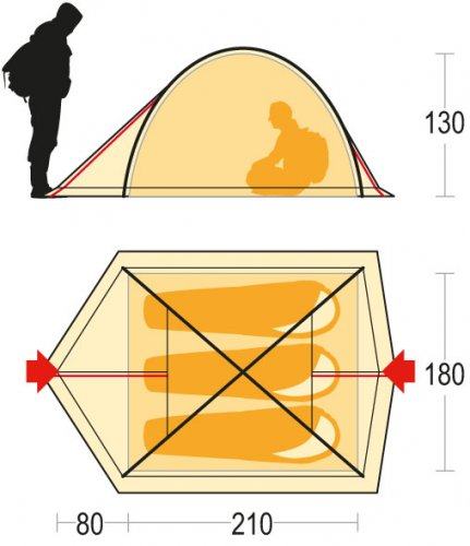 Materijal od termo izoliranog Diamond poliestera, unutarnji šator od vodoodbojnog i prozračnog Diamond poliestera. Pod od poliestera. Lijepljeni šavovi. Konstrukcija šipki od fiberglasa, čelčni klinovi, unutrašnji šator kopča se na šipke plastičnim kukicama. Dvoja vrata, samo jedna imaju mrežicu protiv insekta. Otvori za prozračivanje