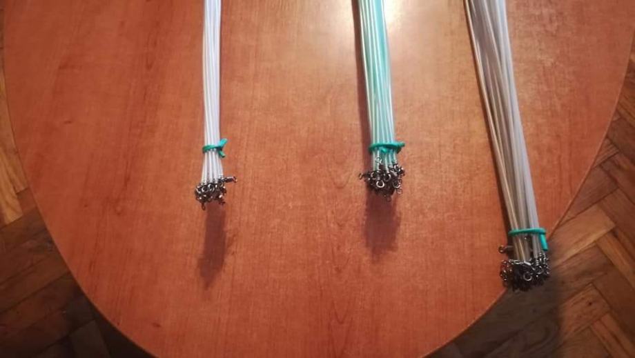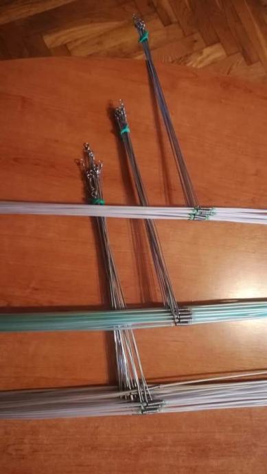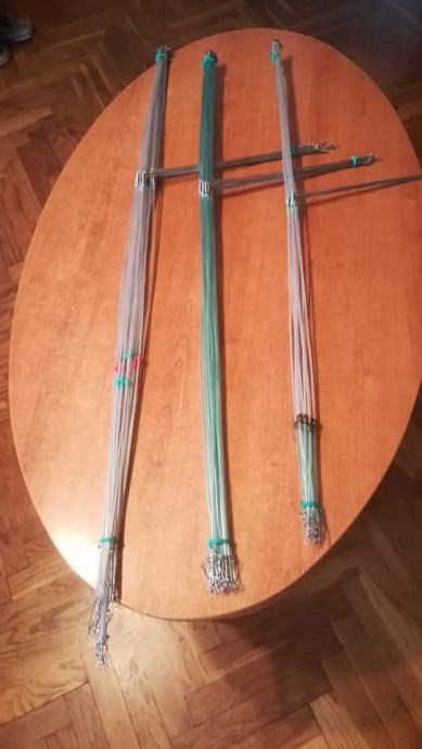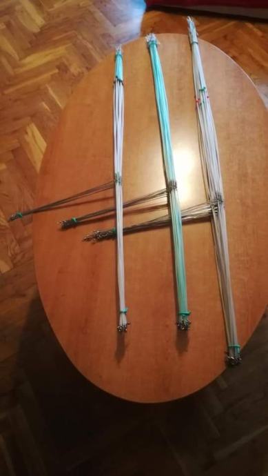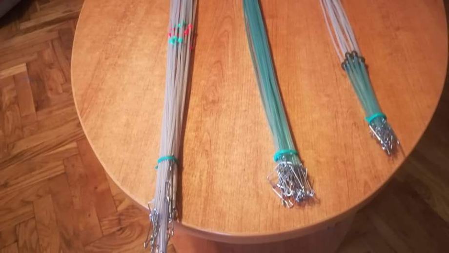 Sistemi za lov grabežljivaca,štuke,soma..."balerine" ručne izrade od kromove žice debljine 1,2 mm okomita os s graničnikom od Trabucco-vih perli,presvučena bužirom.Središnja os izrađena od prokromove žice,debljine 1,2mm na koju stavljate sajlicu sa živim kederom.Dužina sistema od 80-100 cm s kopčom na kraju gdje kačite olovo.Cijena sistema je 25 kuna.Hvala i bistro!!!