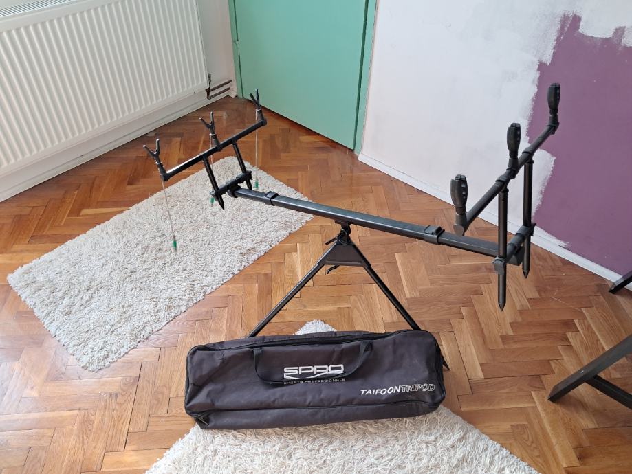 Spro Taifoon tronožac lagani aluminijski tronožac za do 3 štapa za pecanje. Isporučuje se u visokokvalitetnoj torbi za nošenje.