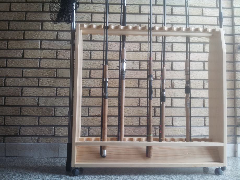 Stalak ima respektabilnih 30 mjesta za štapove (2 reda po 15 komada) te sa strane 2 mjesta predviđena za meredov, kuku za ribu i slično.