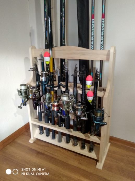 Kvalitetan DRVENI STALAK ZA RIBIČKE ŠTAPOVE - VINTAGE pomaže održavati Vaš prostor urednim, a štapove čuva od nepotrebnih lomova. Može primiti 16 štapova i ne zauzima veliki prostor Vašeg doma.