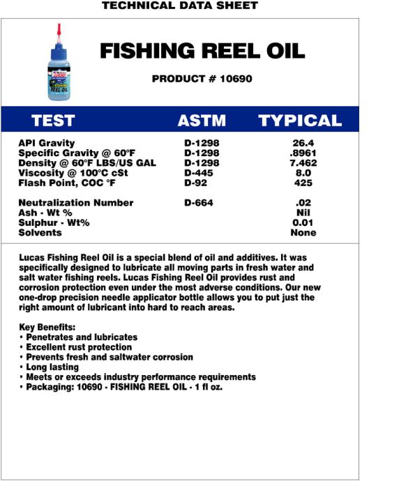 - viskozitet, gustoća, točka kapanja i ostali parametri posebno su formulirani za podmazivanje ribolovnih rola