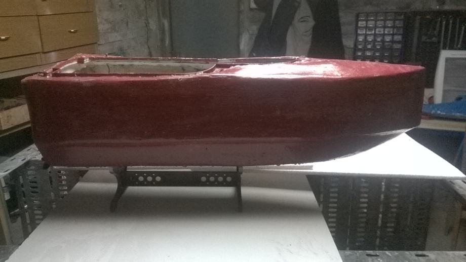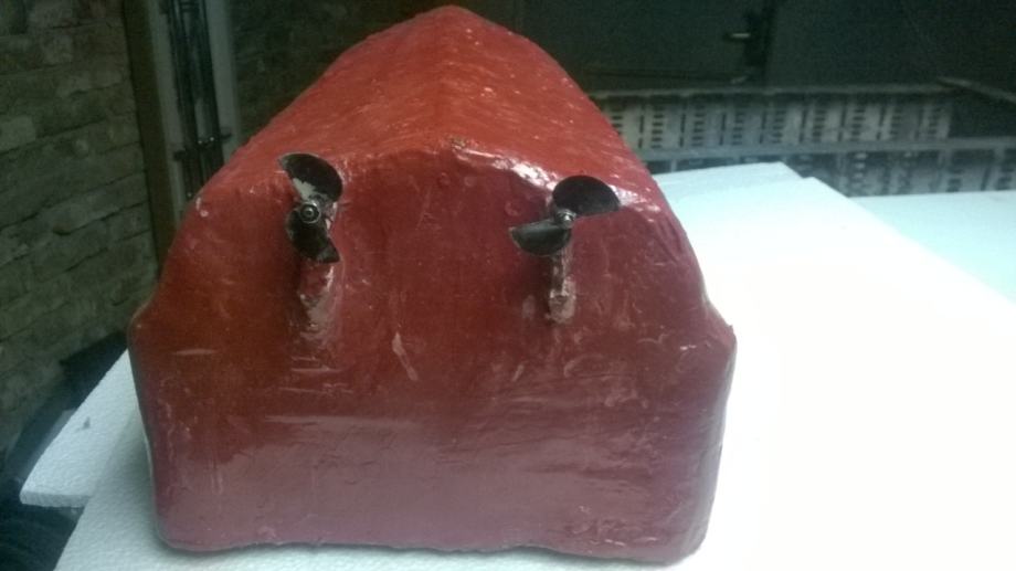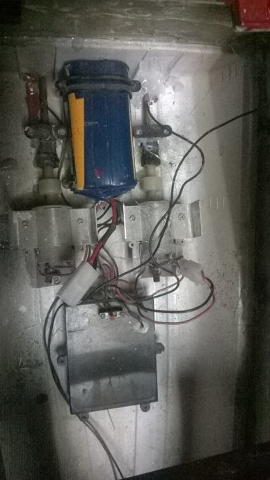 Čamac za prihranu ribe nedovršen,d. 60 cm, š. 22 cm, v. 17 cm treba se napravit kutija za istovar hrane i pokrpat daljinski ispao je ali radi. Radi na 2,7mhz