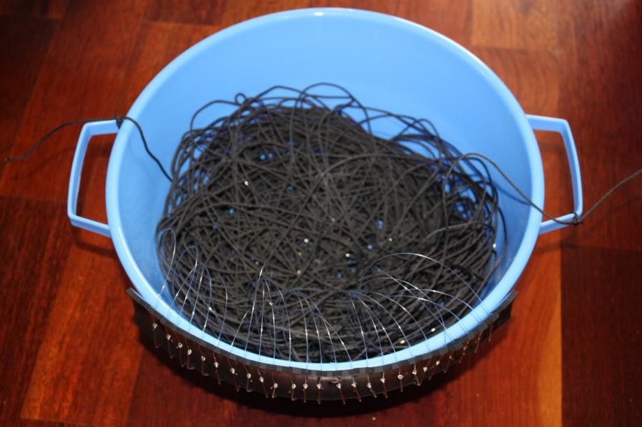 Prodajem novi parangal od 25 udica; za sve vrste ribe, neovisno o tipu dna i dubini; napravljen za lako rukovanje i pokrivanje mikro lokacija. Osnova je od konopa (1.5mm.), pjoci su od 0.5mm duzine cca. 1 m, a razmak izmedju udica je 4m. Udice su inox br. 11,12 ili13(po želji kupca).