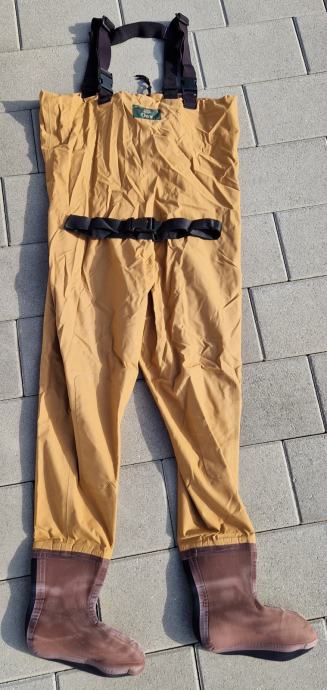 Zbog prestanka ribolova prodajem kombinezon Orvis (wader), prozračni (breathable) sa cipelama za gaženje u vodi sa protuklizajućim donom.
