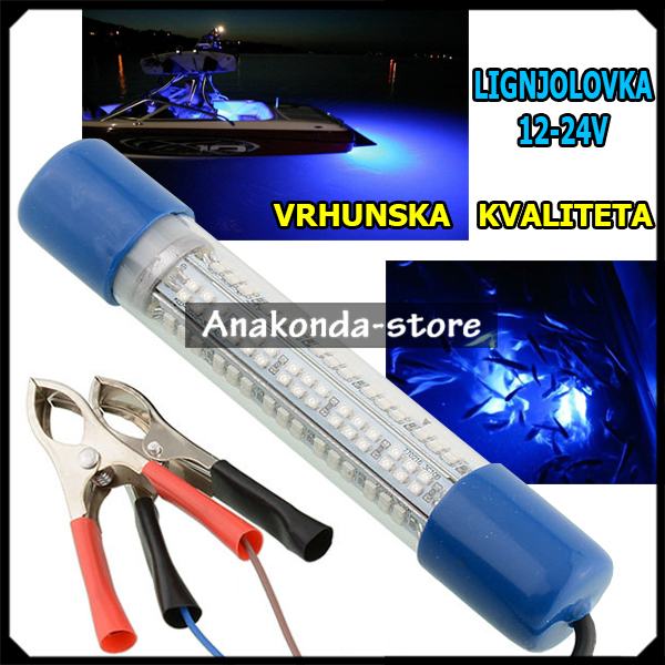 Profesionalna LED lignjolovka vodootporna potopna lampa za lignjolov sa plavim svjetlom za noćni lov na lignja hobotnice i druge ribe uz istinite podatke o snazi i dometu bez laži i prevara. Koristi istosmjernu struju napona DC 12-24V = akumulator