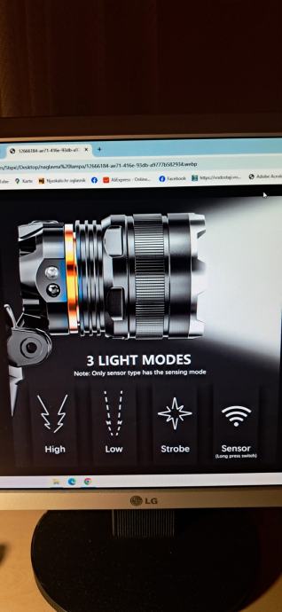 Opcije svijetljenja: jako svjetlo, slabije svjetlo, sos-bljeskanje + senzor