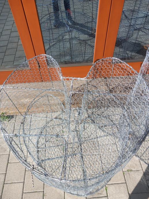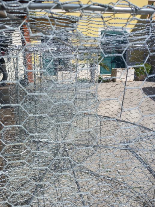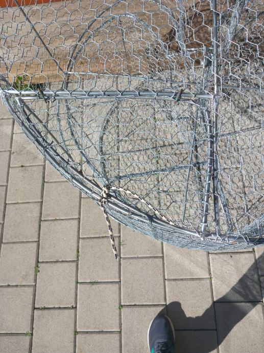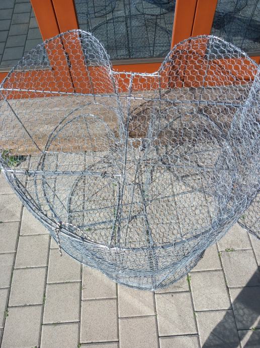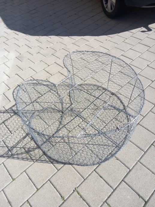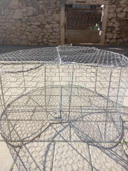 Kostur je od cinčane žice 6mm, mreža je od cinčane žice 1mm, širina oka je 32mm.