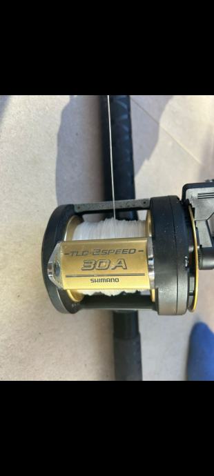 Prodajem profesionalnu multiplikatorsku rolu Shimano TLD 30A 2-Speed sa štapom, komplet spreman za big game ribolov.