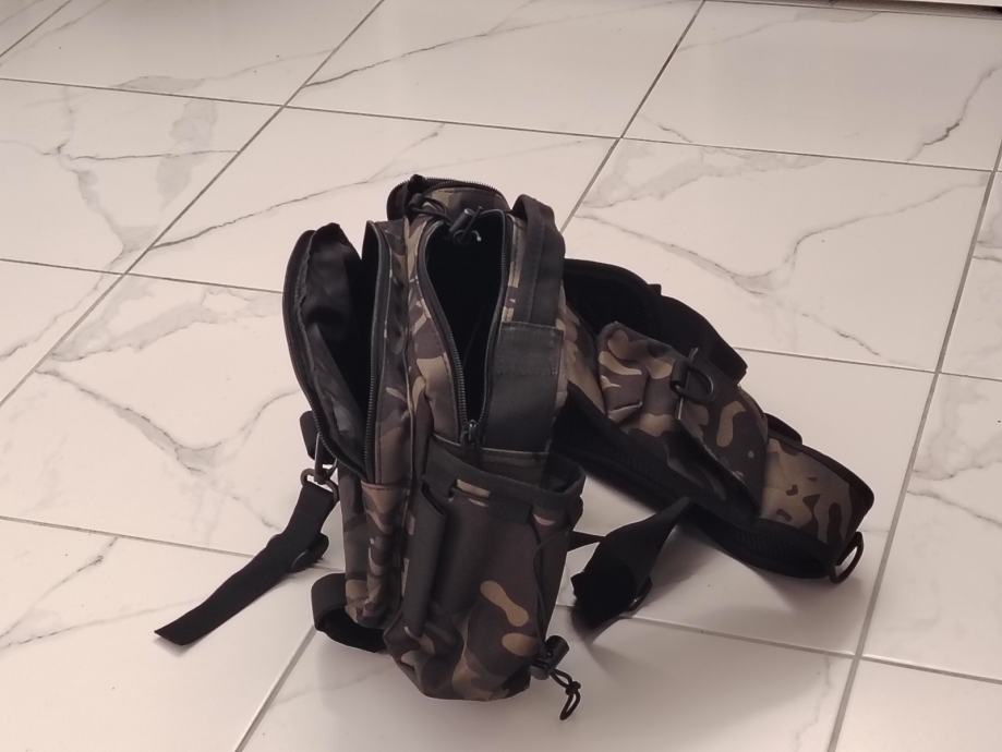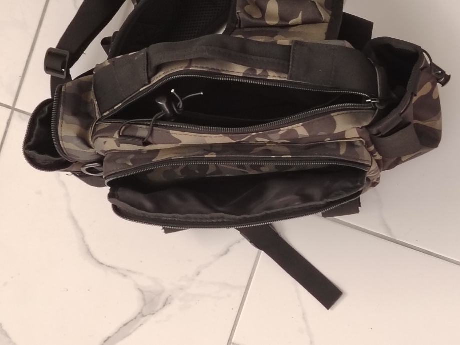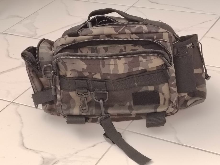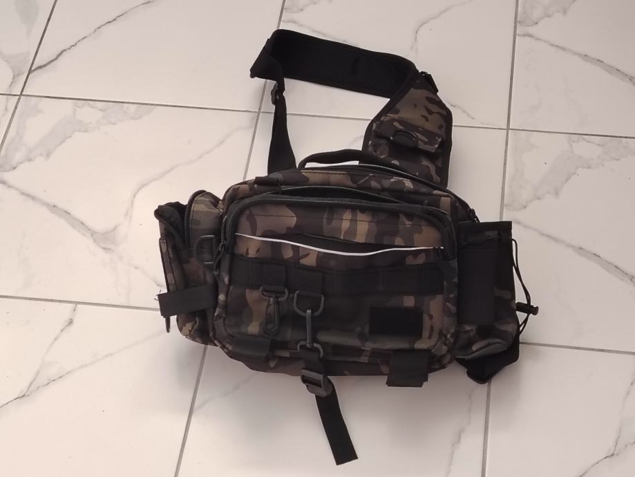 Ribolovna torba za blinkanje sa puno pretinac, može se nositi i jedan štap na njoj, sa pojasom oko ramena i struka, vodootporna.