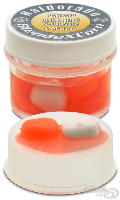 Haldorádó BlendeXCorn Butyric Acid & Mango također je vrlo intenzivane, arome koja steže nos i koja se može zamijeniti s maslačnom kiselinom omekšana je slojem manga, što daje savršenu kombinaciju aroma. Zrna kukuruza su žuta i bijela. Preporučujem ribolov šarana i amura u toplim vodama. Gumene kukuruze ne jede patuljasti som , pa hrabro putuju i tim vodenim površinama, korita su njime zaražena, ali u mulju testova ovaj mamac BlendeXCorn potpuno je izbjegnut, dok je vještoj ribi (šaran, amur, karas) izuzetan mamac!