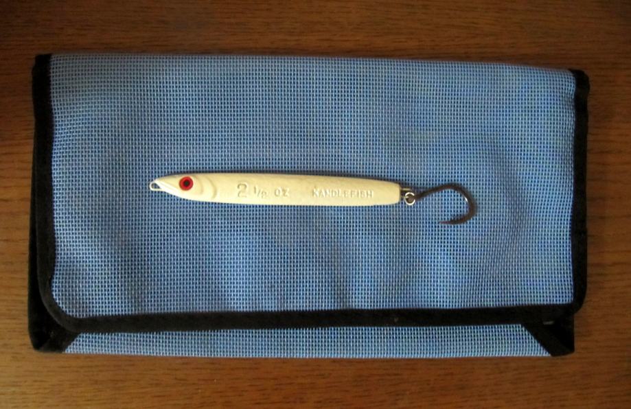 Prodajem jigg varalicu sa slike,jednom korištena, Kandlefish 2 1/2 OZ - BLUE FOX. Varalica je teška cca 85 g, a dugačka cca 14 cm. U sklopu navedene cijene je i torbica za spremanje Jigg varalica, nova.