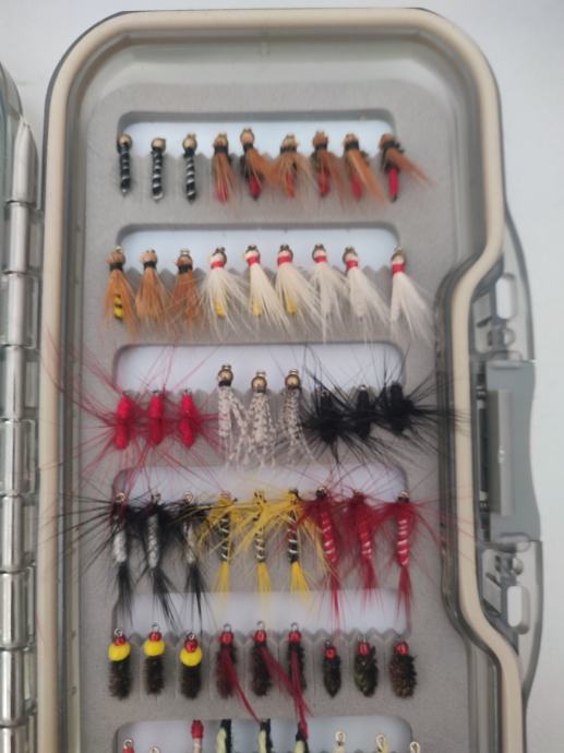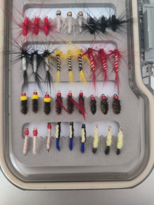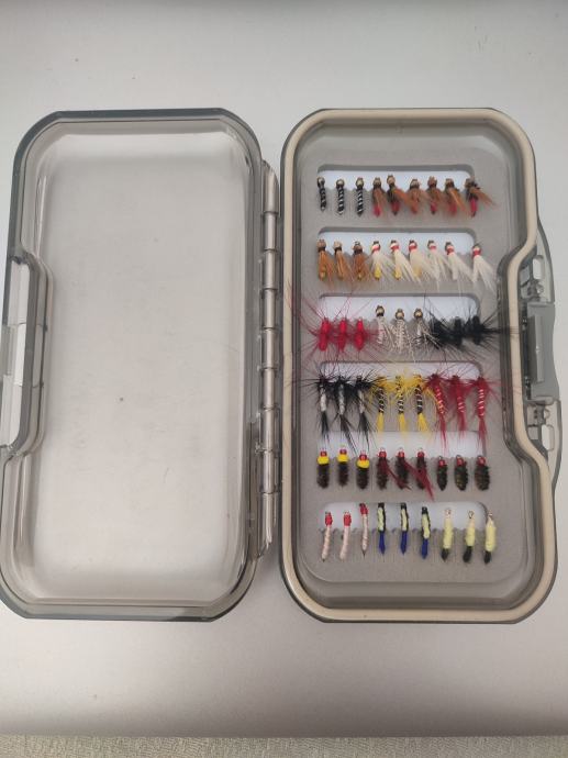 Komplet mušica i strimera, te nimfi za ribolov pastrve, lipljana, klenova i bijele ribe.