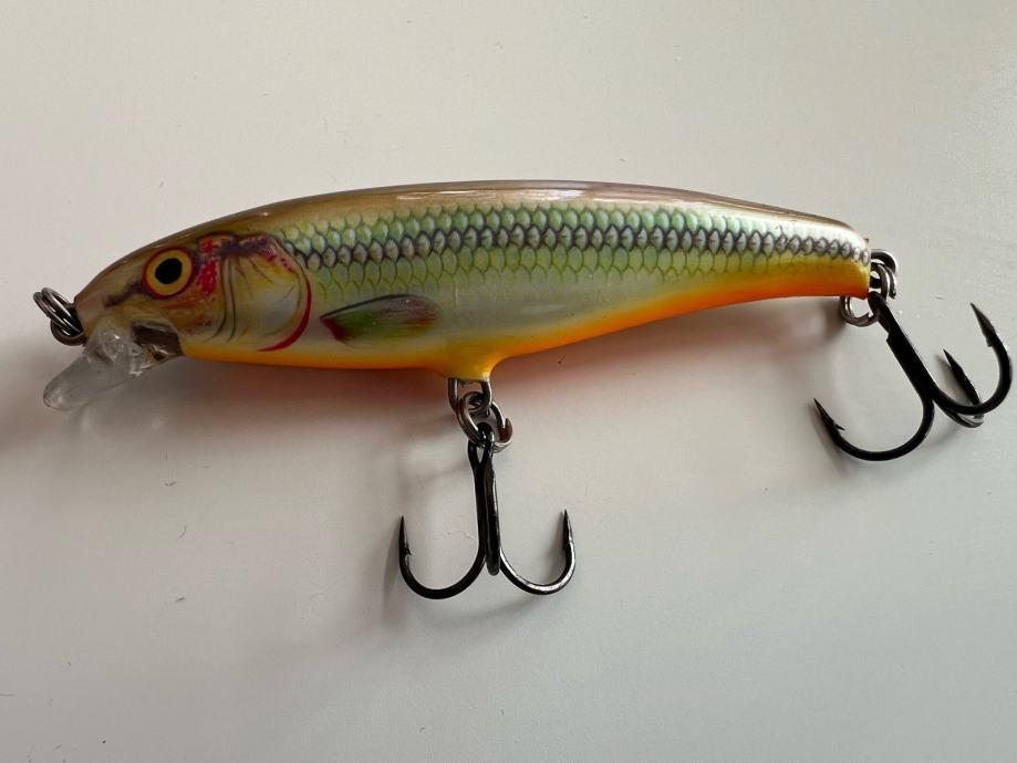 Prodajem rabljenu Rapala varalicu koja imitira ribu s atraktivnim bojama i detaljima. Ova kvalitetna varalica je savršena za privlačenje velikih riba i idealan dodatak vašoj ribolovnoj opremi. Unatoč korištenju, mamac je u dobrom stanju i spreman za novu ribolovnu avanturu.