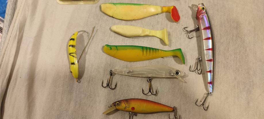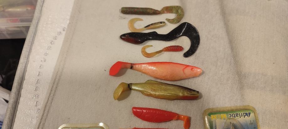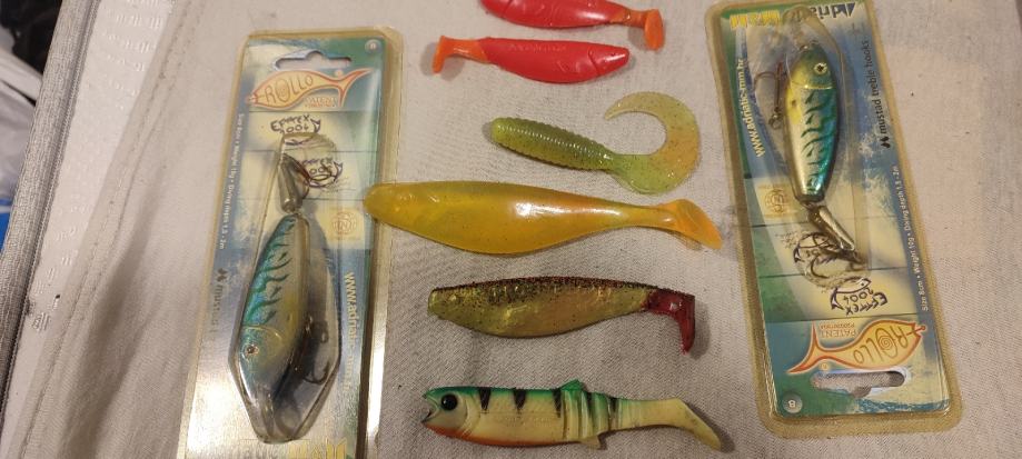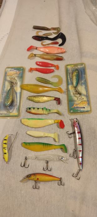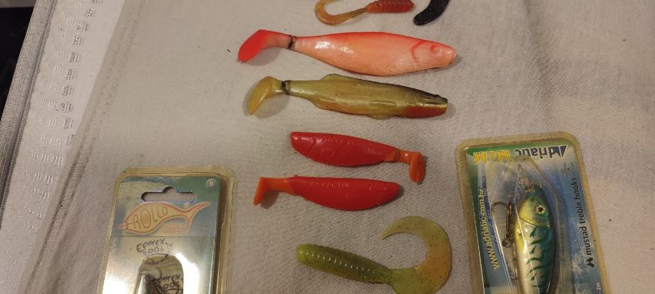 5 voblera, žlica sa zaštitom od kamenja trave, granja i sl., 15 silikonaca, nekorišteno, sve kvalitetni. U kompletu.