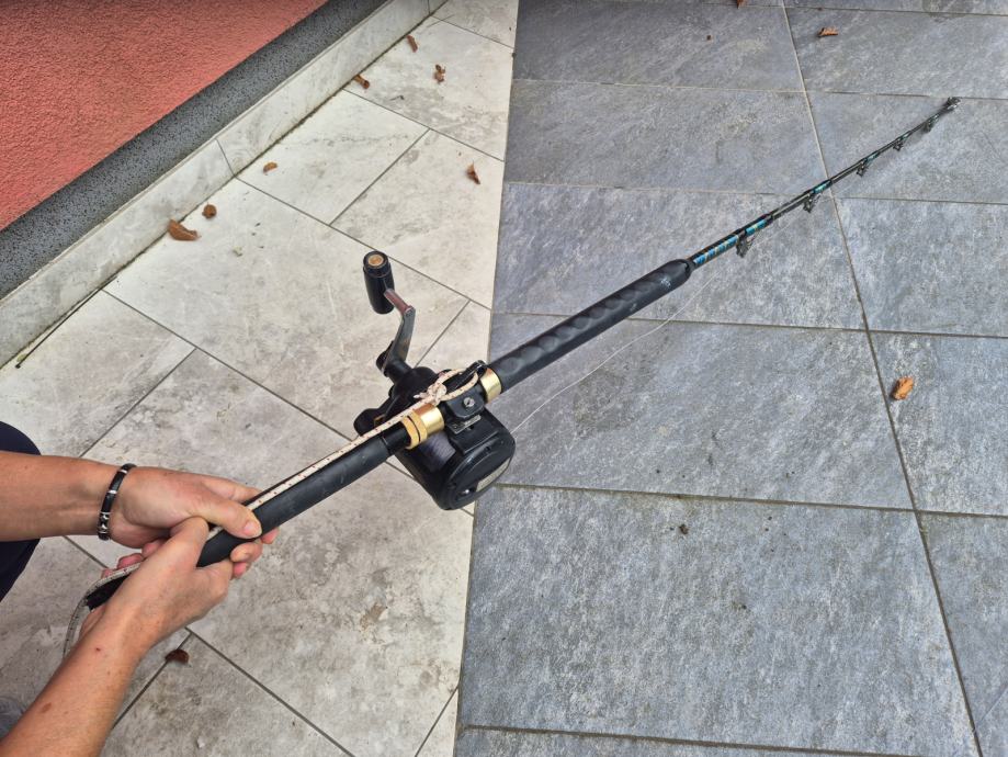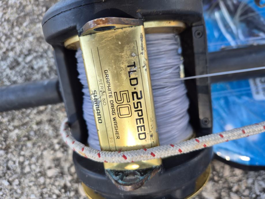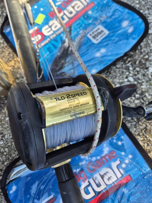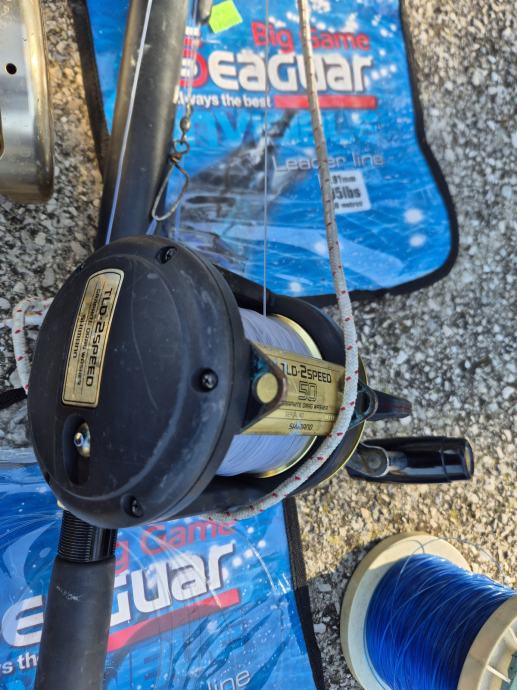 Štap Pen 50/80 lbs sa rolerima, opremljen multiplikatorskom rolom 50 lbs SHIMANO TLD50R, malo korišteno, uz štap ide i najlon i par Big Game varalica