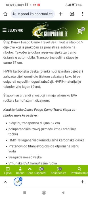 Vrlo praktičan štap za put radi transportne duljine od 66cm.