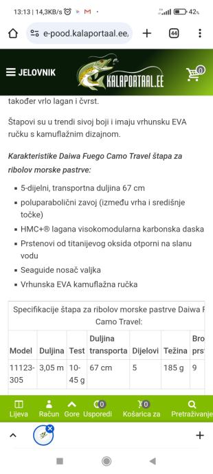 Relativno mekan u vrhu sa dovoljno snage u donjem dijelu može odraditi sve od lignje i sipe do većih grabežljivaca.