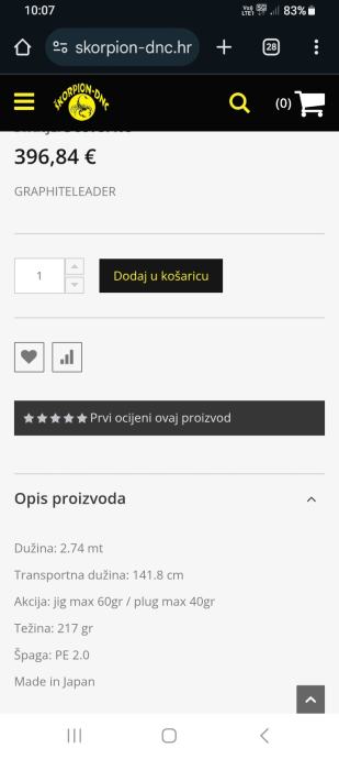 Prodaje se stap za shore jigging ,spining stap maksimalno ocuvan mogucnost kupnje sa rolom daiwa certate hd 3500 komplet cijena 500e komplet u top stanju