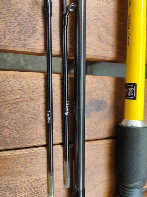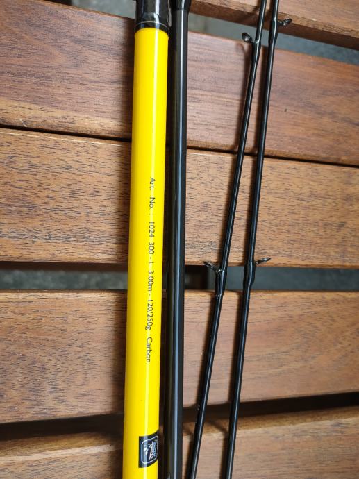 Štap iz naslova dužine 3m i težine bacanja 120-250gr namijenjen za morski lov orada iz barke, ali može poslužiti za sav ribolov ješkom. Sastoji se od 2 dijela + 2 osjetljiva vrha od 42 i 84gr. Ima SIC vodilice pa se može loviti i upredenicom. Dužina od 3m je pogodna za lov sa obale i iz barke. Nekorišten je, stoji, pa se zato prodaje. Cijena je 60€ + poštarina