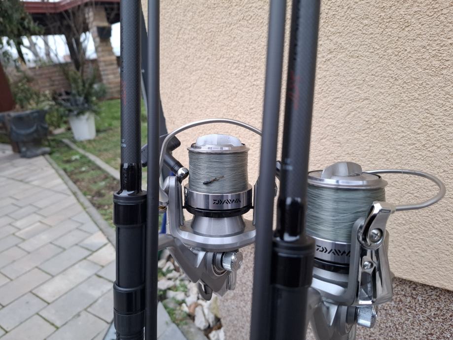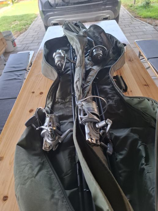 Novi štapovi Daiwa crosscast s tim da su 3 kom xt jedan je carp svi su 3,6 m.Role su dvije Daiwa crosscast br 5000 lda sa slobodnim hodom i dvije Daiwa crosscast x 5000 brza kočnica korištene na drugim štapovima na 10-tak ribolova,stanje10/10 nema tragova korištenja.Torba je daiwa infinity sistem 5 štapova.Sve u kompletu 650 e.