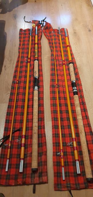 Štapovi su proizvedeni 1975 i nikad nisu bili na vodi ..posjeduju svoje orginal futrole ..duzina 390 gramaza 80 120 ..trodjelni stapovi ..