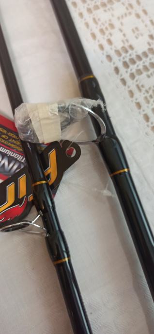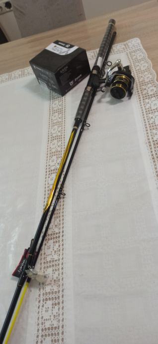 I štap i rola su potpuno novi i ne korišteni, zapakirano u original ambalaži iz koje je izvađeno samo zbog slikanja...Štap je 242 cm , 40-80g , vrlo jak i moćan štap predviđen za lov velikih riječnih predatora u rijeci ili na moru...