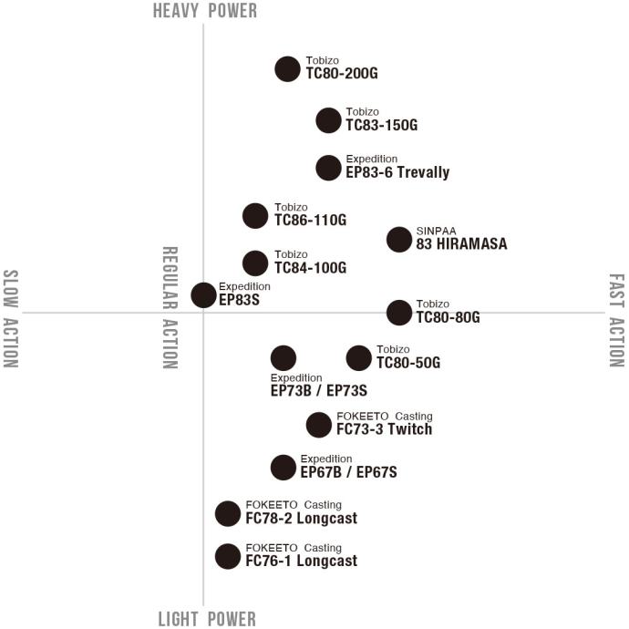 The TC86-110G is the best-casting rod in the Tobizo series, exemplifying the “cast farther than ever before” ethos of the Tobizo series perfectly. The amazing distance is best achieved with lures in the 110g range. Perfect for taking on all types of tunoids, this mode’s super high elasticity and potential for distance make it ideal for reaching and subduing even the mighty tuna, despite their incredible strength and speed. ,