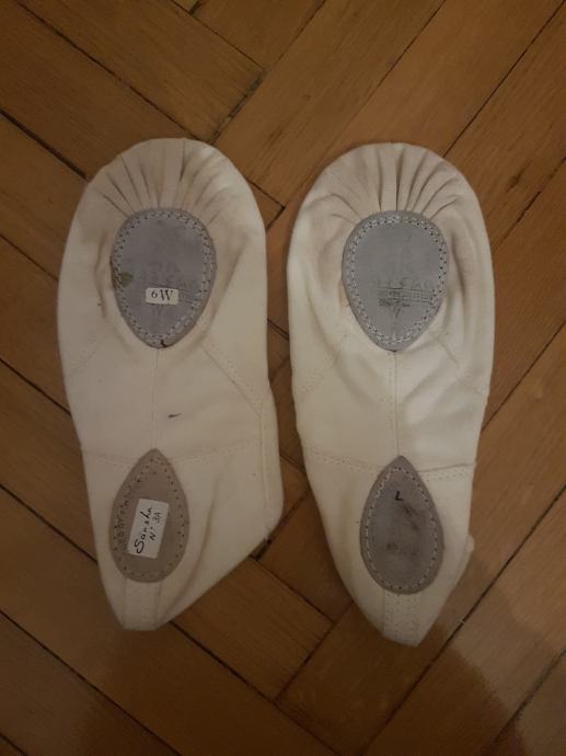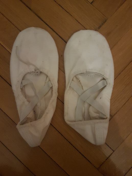 Prodajem bijele platnene baletne papučice, nekorištene ali malo uprljane od stajanja (lako se peru). Veličina cca 37.
