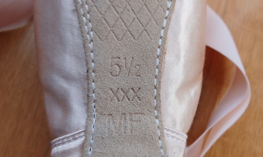 Skoro nove Grishko špice za balet, broj 5 1/2, 245-250 mm, sa ušivenom trakom i laštikom. Tvrdoća špica je MF, a širina XXX.