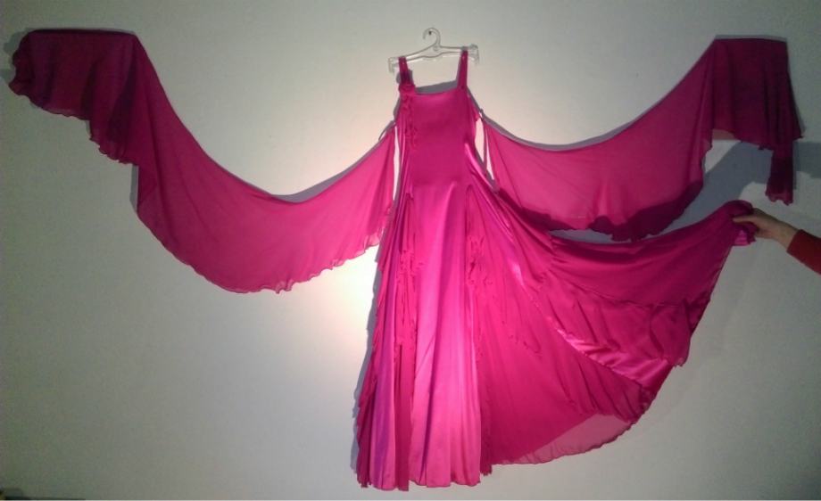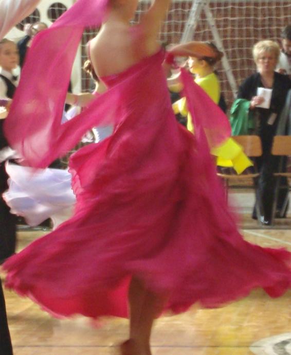 Prodajem ST haljinu za mlađu mladež (dužina haljine 128 cm), unikatno dizajniranu i bogato izrađenu od lepršavog svilenog satena i svilenog muslina iz Engleske, nošenu na samo jednom turniru. Uz haljinu je moguće posebno dobiti isti materijal (1,5 m svilenog satena i 1 m muslina) od kojeg je izrađena, za eventualne dodatne ukrase.