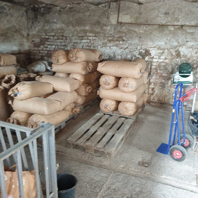 Zob je žetva 2025,uvrečena u papirnatim vrečama po 30 kg.Cijena je 0.40 centi kg.