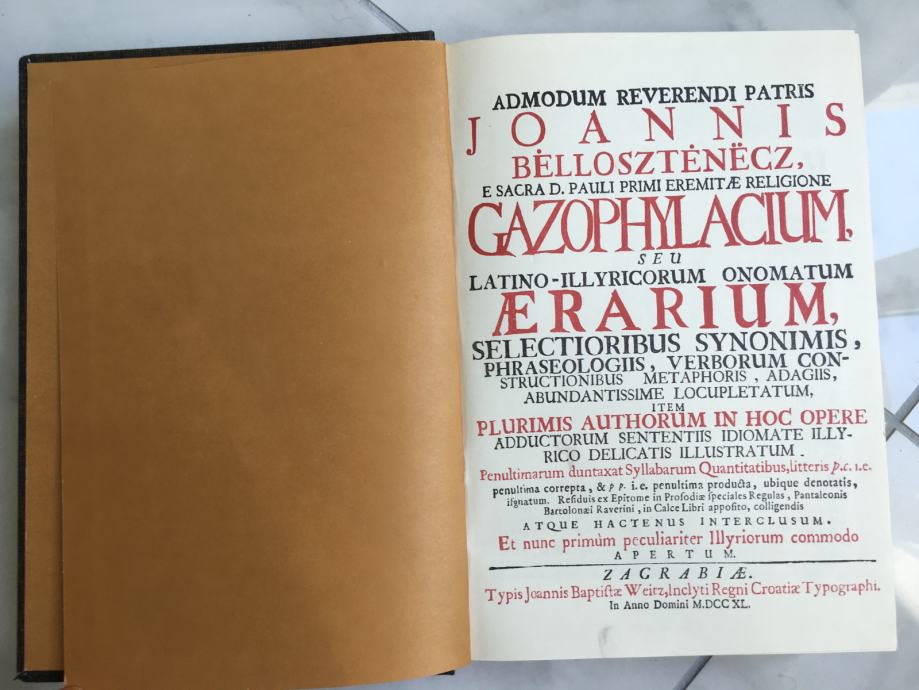 Tronarječjem, bogatstvom riječi koje je autor prikupljao gotovo četrdeset godine, rječnik je nadmašio sve dotadašnje, ali je takvim i ostao do današnjih dana. Belostenčevo životno djelo ležalo je u rukopisu 65 godina u pavlinskom samostanu u Lepoglavi. Rječnik je 1740. objavio u Zagrebu pavlin Jeronim Orlović. To je prvi rječnik koji obuhvaća sva tri hrvatska narječja. Njegovo leksičko blago u prvom je redu kajkavsko, ali ima štokavizama i čakavizama. Spajanjem narječja Belostenec se uključuje u struju koja je težila ostvarenju jedinstvenog jezika.