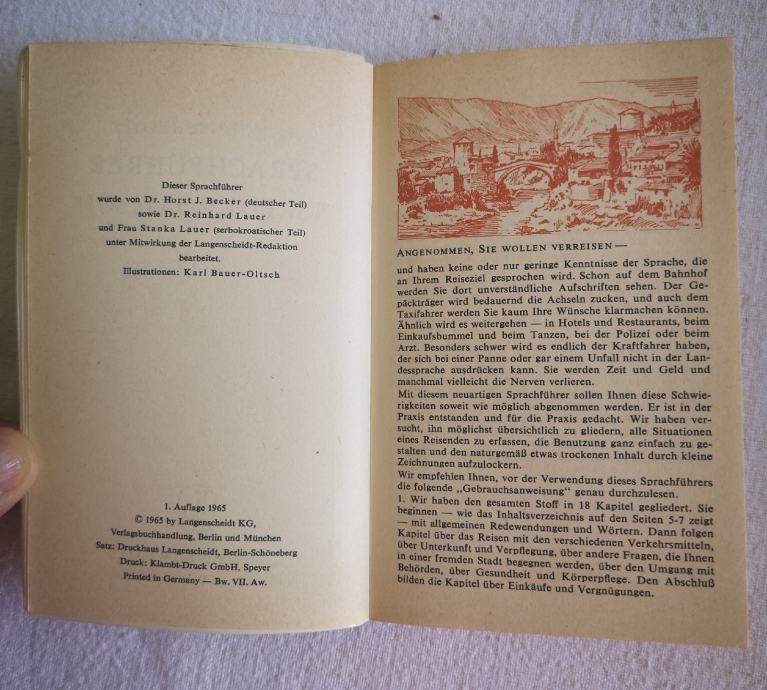 DZEPNI RJECNIK NJEMACKOG JEZIKA SA PRIJEVODOM NA SRPSKI - HRVATSKI JEZIK sa pismom na latinici i cirilici.. iz 1965.god..SA IZGOVOROM..sa ilustracijama.. u plastificiranim koricama..cuvan u vitrini sa staklom..bez ikakvih je ostecenja.. dimenzije : 15,5 x 10 cm.. Nazvati 099 557 00 00..hvala