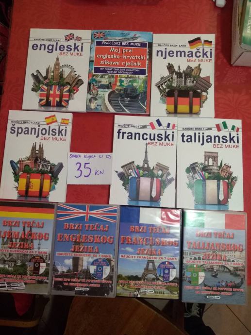 Knjige su nekorištene. Svi priručnici osim španjolskog imaju i CD.