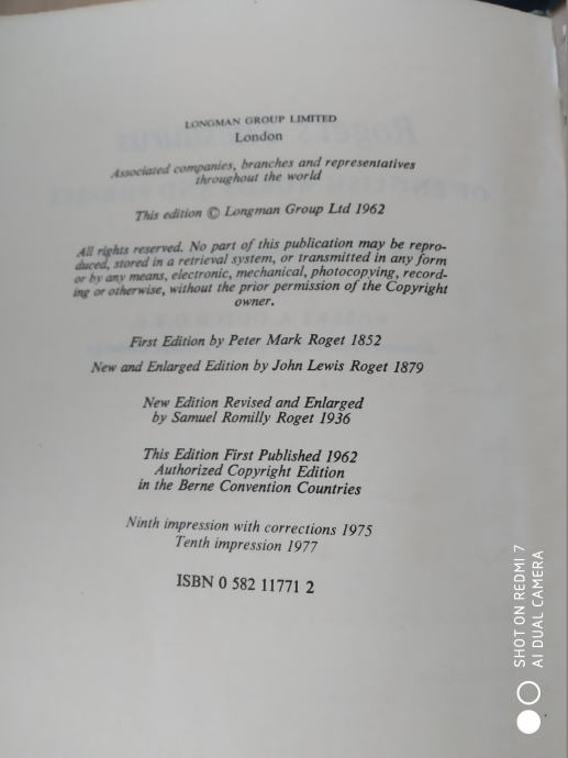 Prodajem "Rogets Thesaurus of English Words and Phrase"s , izdanje 1975.,tvrdo izdane, potpuno očuvani, kultni i vrhunski englesko-engleski riječnik fraza i idioma sa