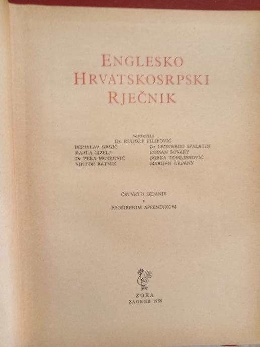 Englesko -hrvatski rječnik iz 1966 g. u izdanju ZORA- Zagreb.