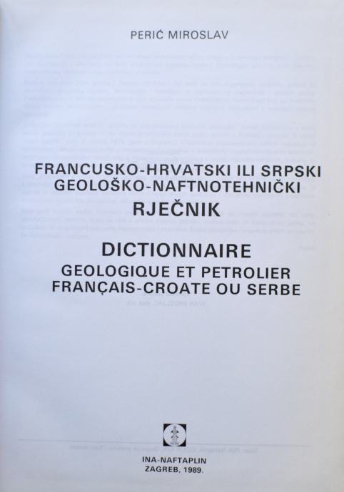 Francusko hrvatski ili srpski geološko naftnotehnički rječnik, autor Miroslav Perić, INA Naftaplin, Zagreb 1989.