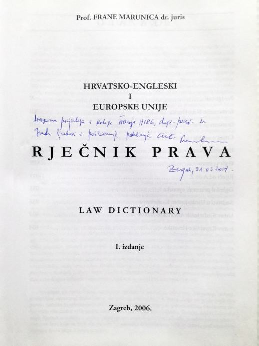 Ujedno je ovo prvi pravni hrvatsko-engleski rječnik u
