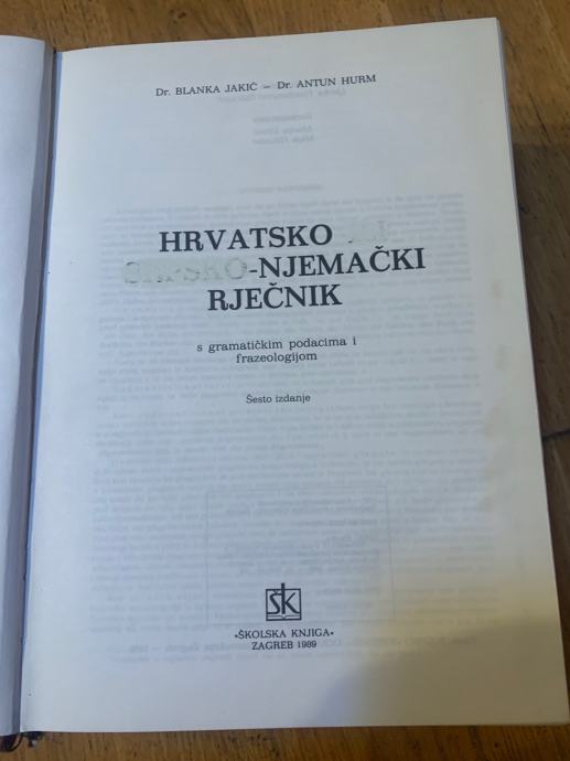 Hrvatsko njemacki rjecnik autora Jakic-Hurm, izdanje Skolska knjiga