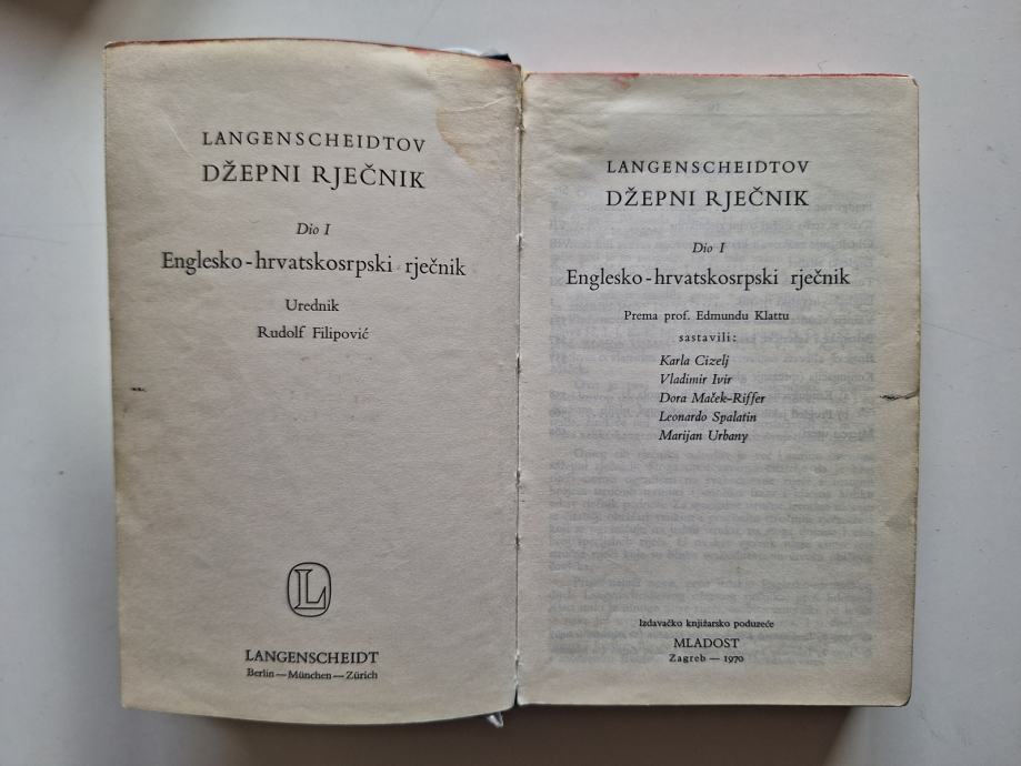 LANGENSCHEIDTOV DŽEPNI RJEČNIK I. DIO ENGLESKO-HRVATSKOSRPSKI RJEČNIK